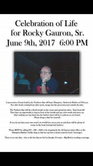 Please join us for the celebration of life for Captain Rocky Gauron Sr. 6/9/17 6:00 PM