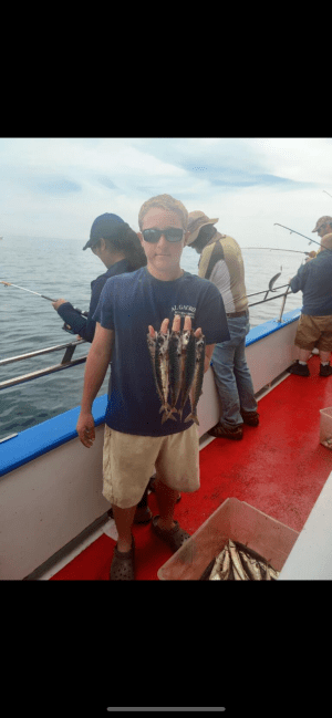 Pictured is a beautiful pollock caught on Thumper 2 with Capt Rocky and Jax with the only jewelry he would ever wear…mackerel rings